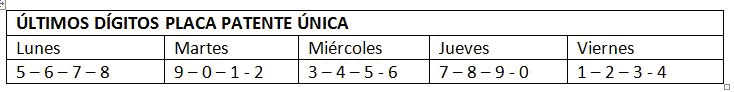 ü En caso de Alerta Ambiental se mantiene el calendario ante señalado, pero se agregan dos dígitos si es que el episodio se decreta durante el fin de semana o en días festivos.