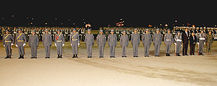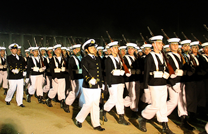 El Ejército con su Banda de Guerra e Instrumental fue la primera en acceder a la explanada por el interior de los muros históricos, para luego continuar con dos batallones, a continuación lo hizo la Academia Politécnica con su Banda de Guerra e Instrumental, a la que continuo con 2 batallones y una Compañía de Guardia Marinas.