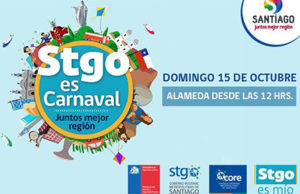 “Santiago es Carnaval” se realizará el domingo 15 de octubre a partir de las 12 horas en la Alameda, con el recorrido de 52 carros alegóricos correspondiente a similar cifra de comunas de la R.M. y 30 comparsa de 3 mil bailarines y músicos, que se desplazarán desde Plaza Italia hasta La Moneda.