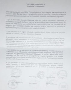 Este es uno de los párrafos de los 5 puntos donde 6 de 10 concejales que integran el Concejo Municipal de Maipú entregaron su respaldo al concejal Ramos, acusado ante el Segundo Tribunal Electoral de la Región Metropolitana de notable abandono de deberes.