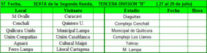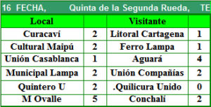 Curacaví recibe a Ferro Lampa, club este último que con su partido ganado a Litoral Cartagena prácticamente disminuyó a cero la posibilidad que los cartageninos (cartageneros) clasificaran. Ferro Lampa sumó su tercer partido ganado mientras que Curacaví tiene 14 partidos ganados.