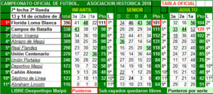 Otro tanto ocurre en senior “A”, sonde se mantienen punteros Florida Loma Blanca y Real Flandes, pero Florida debe quedar libre, `pero algo puede ocurrir cuando se enfrenten en la 11º a fecha, con Flandes de local.