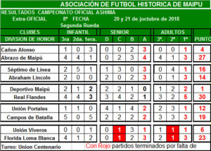 Una pena, se señalaba en la barra de Florida Loma Blanca por la agresión de uno de sus jugadores al árbitro de senior “C”, serie donde estaba en juego el liderato, otro tanto con un intento de agresión que dada las condiciones álgidas se determinó por el árbitro dar terminado el partido antes del tiempo reglamentario. Esta semana el atractivo del torneo lo tendrá la Comisión de Disciplina, esperándose sanciones fuertes para que se justifique la creación de esta nueva asociación, se señalaba en a cancha vecina donde jugaba Abrazo de Maipú versus Cañón Alonso.Está claro que los arbitrajes no han sido de lo mejor, la fecha anterior observamos horrorosos arbitrajes, y la opinión de esta semana por parte de hinchas y jugadores es que habían sido malos arbitrajes para ambos clubes que disputan los puntos. Habrá que preguntase si un árbitro esta en condiciones de cumplir bien su labor con 3 o 4 partidos seguidos y su físico mermado, por lo cual no se puede exigir que corra y este seca de la jugada.