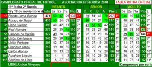 Florida Loma Blanca sumó el primer campeonato de ASHIMA, la Asociación de Fútbol Histórica de Maipú que logró el cometido de tener un campeonato exclusivamente de fútbol, dejando fuera a quienes tienen otro tipo de practicas. Florida sumób5 campeones por serie, d0os de ellos compartidos con Abrazo de Maipú, club éste último que además suma el campeón en serie Senior “D”. Unión Viveros se queda con dos campeonatos por serie Flandes que pudo tener tres se tuvo que conformar con uno. Campos de Batalla y Unión Centenario se quedaron con una serie campeona, pero los albos sumaron la Rama Adulta.